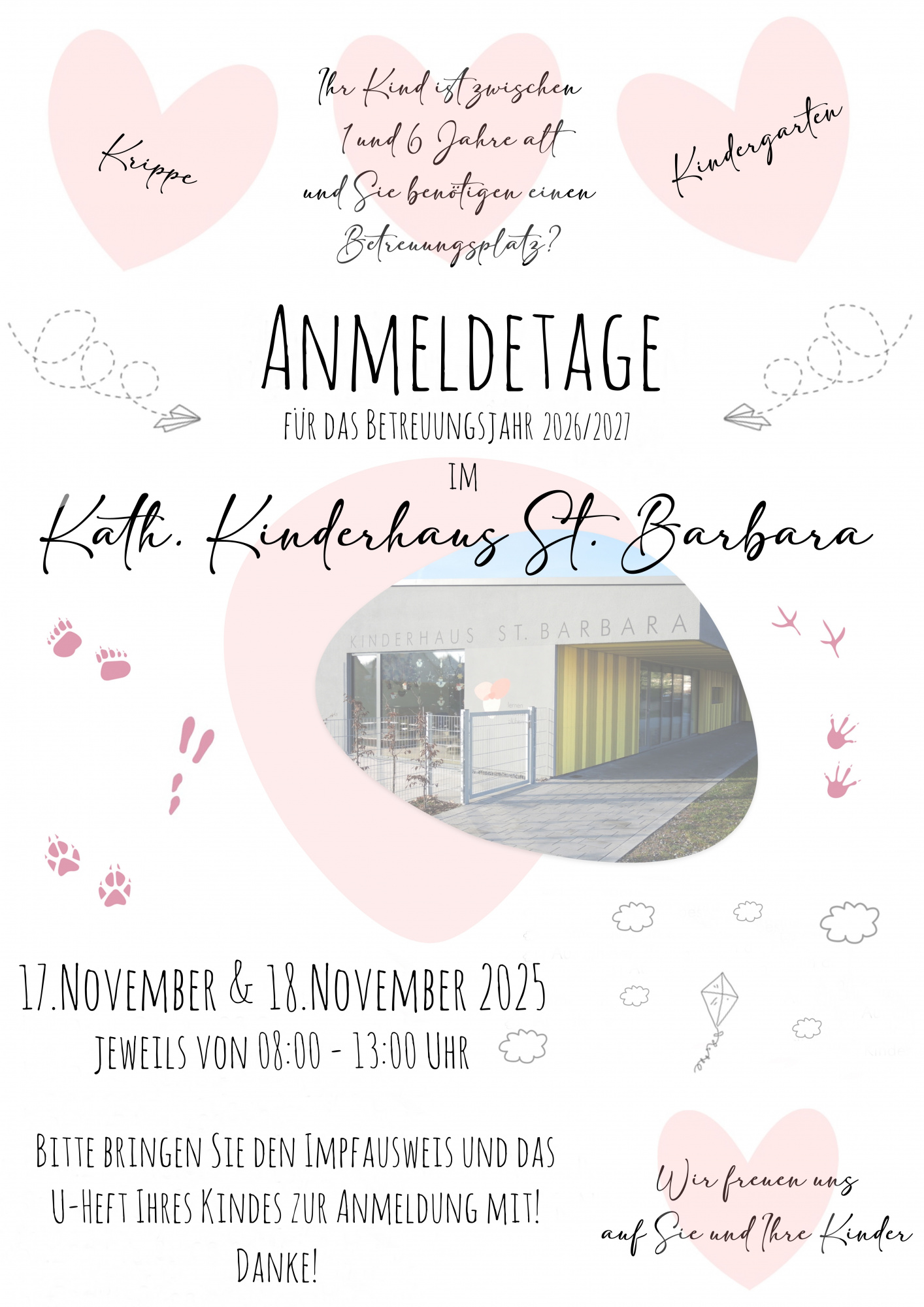 Anmeldetage für das Kinderhausjahr 2026/2027